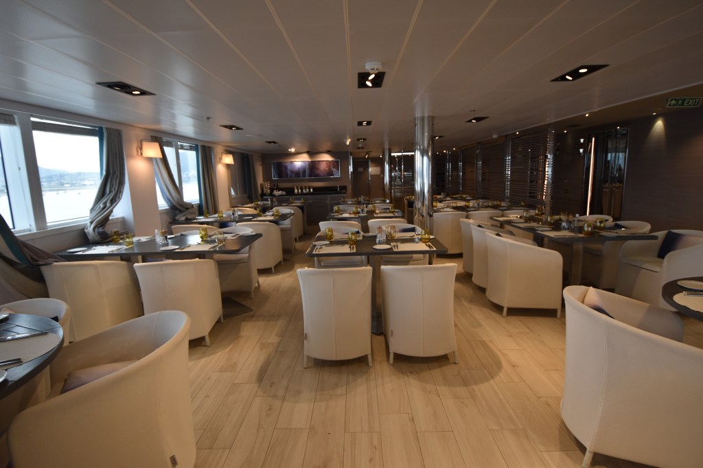 We are sailing onboard Ponant’s Le Lyrial. She is one of four identical sisterships. She has 6 decks of which passenger cabins are on decks 3 through 6. We are sailing in Cabin 614. This cabin was a free upgrade when Ponant moved us from the L’Austral onto the Le Lyrial. She has about 150 crew members and 150 passengers for our sailing.