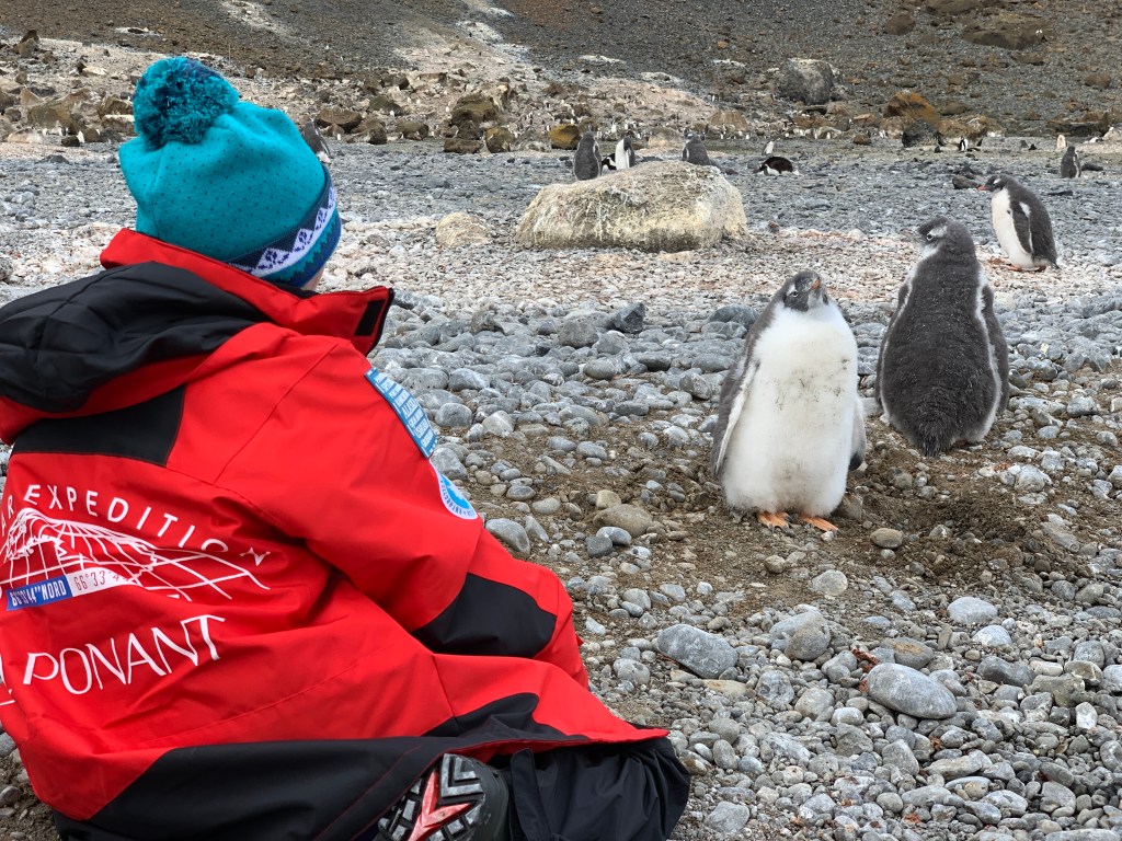 We were in the early zodiac group this morning disembarking the ship at 7:30am for the short zodiac ride to the landing beach. We spent an hour on the continent watching the penguin colonies before returning to the ship. We are rapidly learning what layers are needed on our landings. There were two species of penguins here, gentoo and adelie.
