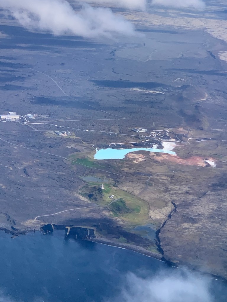 We arrived a few minutes before 10am in the morning in Icelands. After picking up our luggage and rental car we were off to explore. We decided on a relaxing day at Blue Lagoon was just right to keep us awake and adjusting to the new timezone. Eagle-eyed Mac spied Blue Lagoon from the air as we were landing in Keflavik..