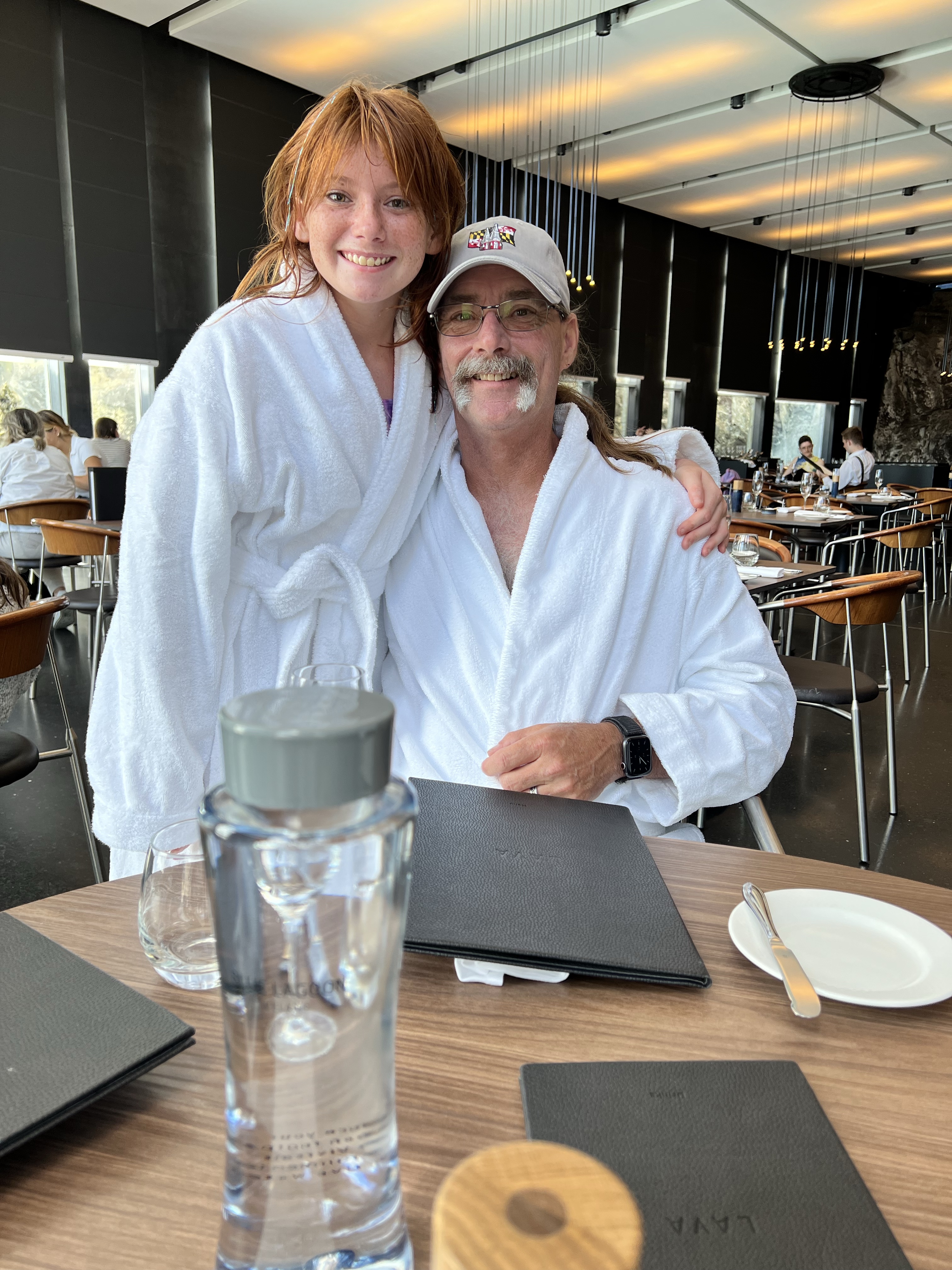Our reservation included bathrobes for the day and lunch reservations at Lava Restaurant for lunch. During lunch the restaurant is open for bath robe dinning.