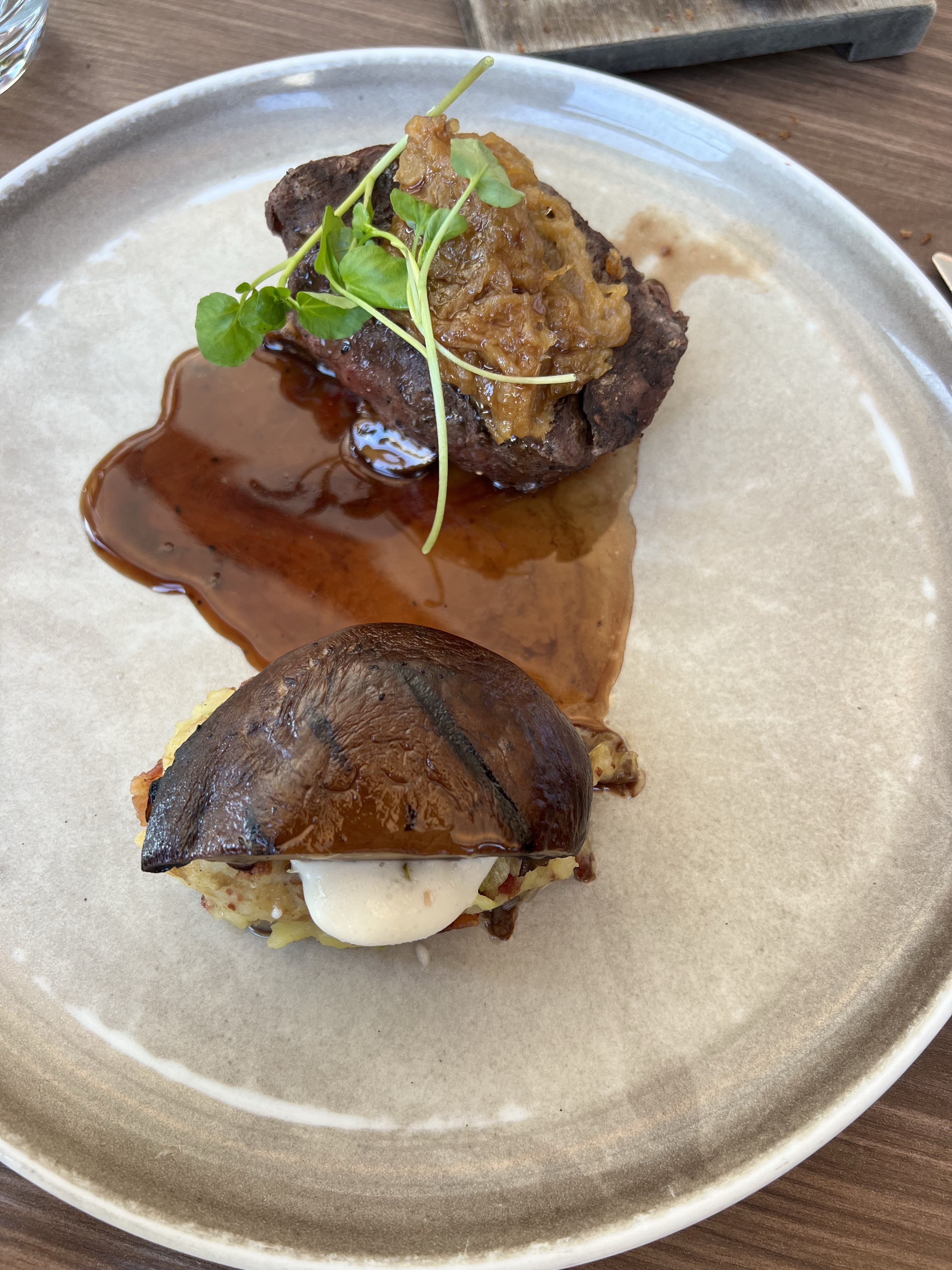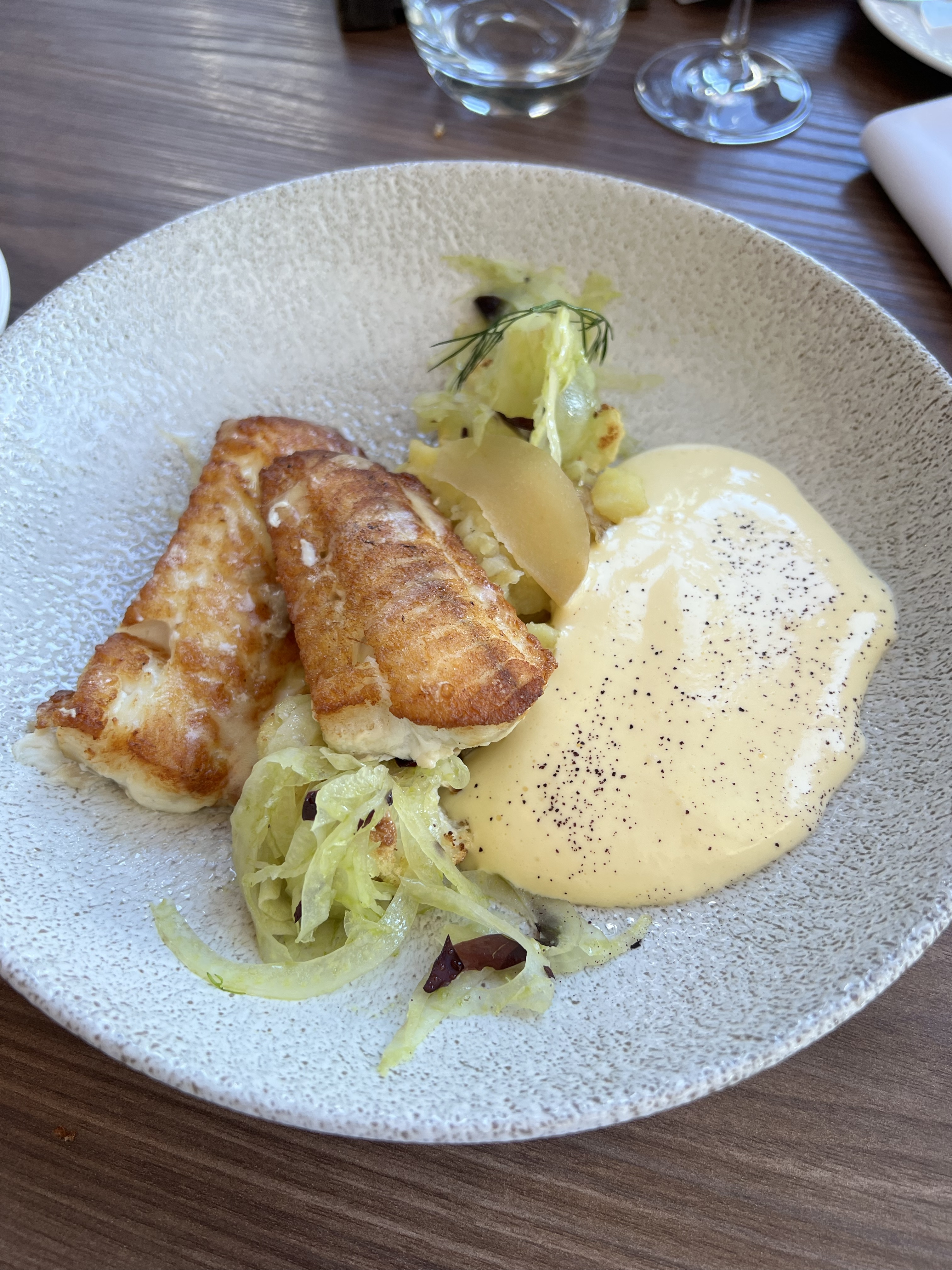 Chuck had the Catch of the day. After he ate it we asked what fish it was…Arctic Wolffish…we decided it looked better plated that the actual fish!