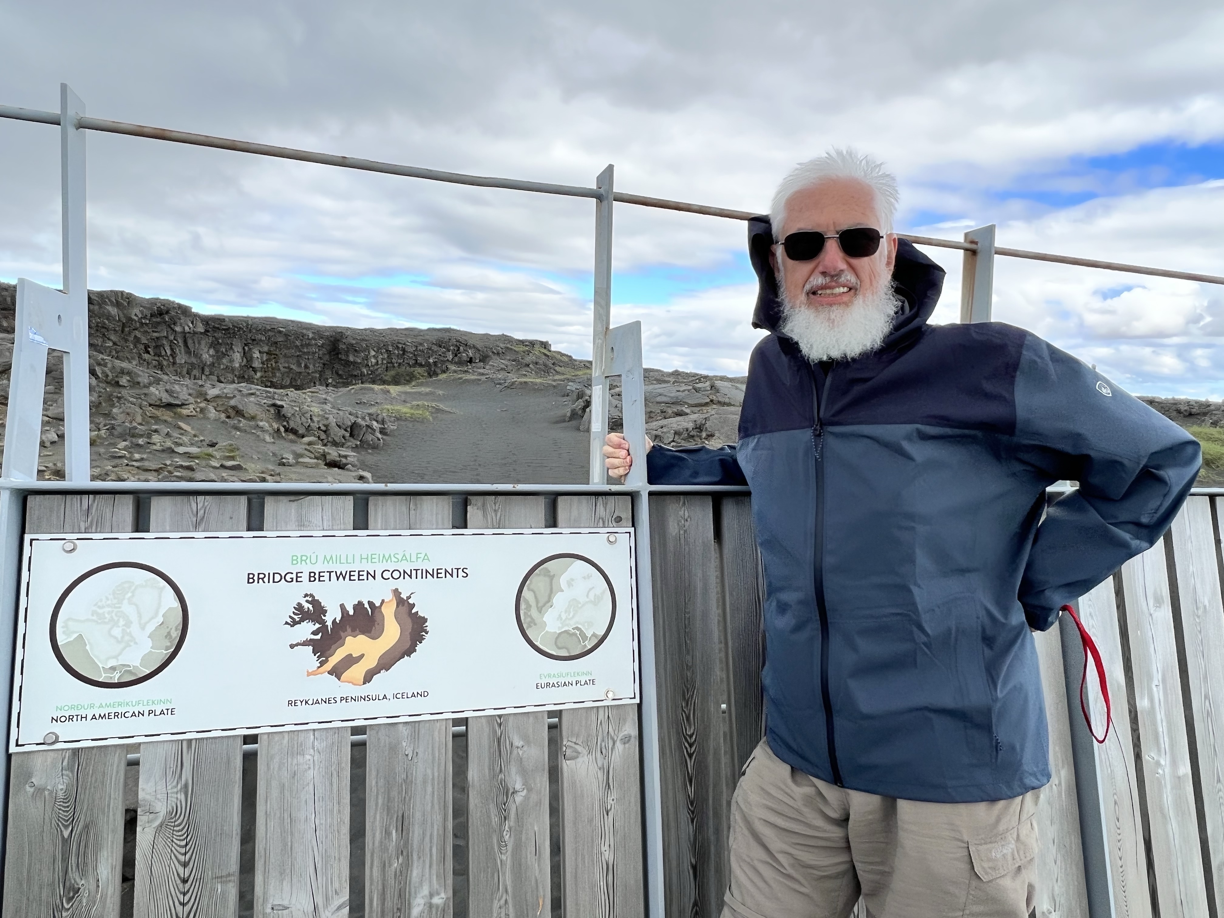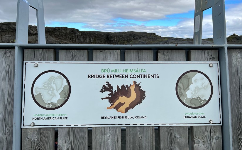 We decided to do a loop from Blue Lagoon back to Reykjavík which took up past this pedestrian bridge between the North American and Eurasian Tectonic Plates. On one side is North America the other Europe and Asia. Eventually many many millennia from now Iceland will be split into two islands. The rift between the two plates separated by 2.5cm per year.