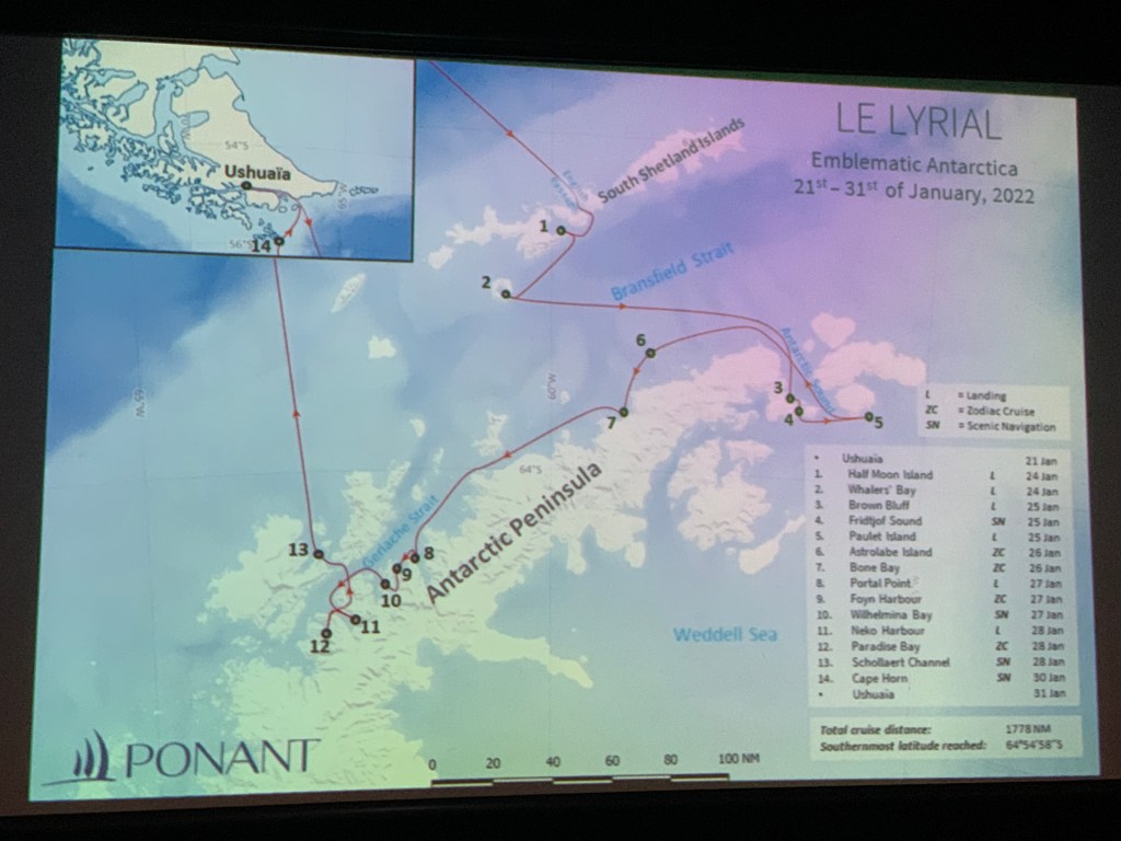 The ship sailed around the Cape Horn from Chile to Argentina allowing us to sail from the Southern Ocean to the Pacific Ocean and the back into the Atlantic Ocean before entering the Beagle Channel named after Darwin’s HMS Beagle. We then toured the town of Ushuaia before boarding our Charter Flight for the 3.5 hour flight back to Buenos Aires.